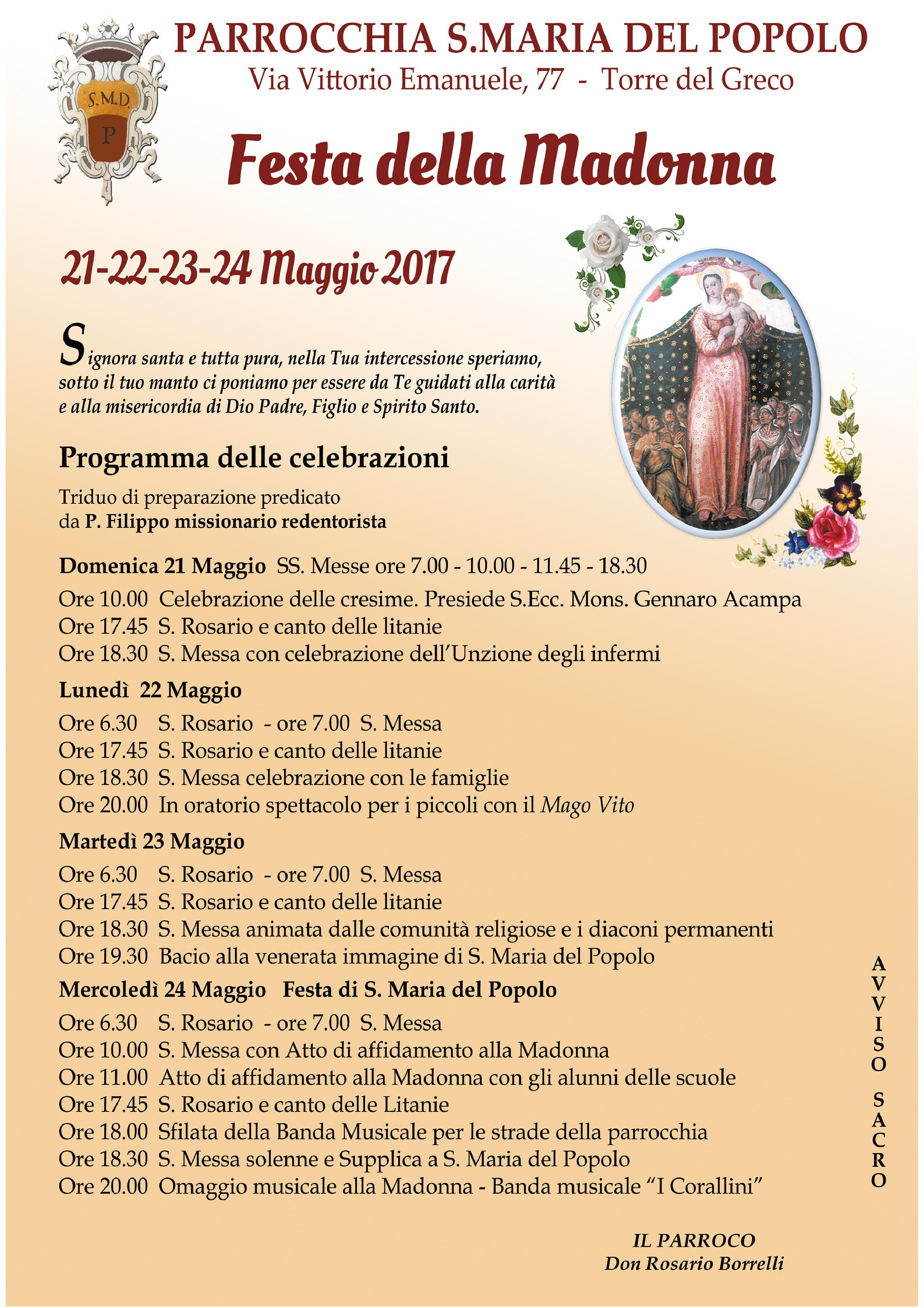 Festa della Madonna – Maggio 2017 Pubblicato giorno 17 maggio 2017 - Avvisi, In home page, in primo piano